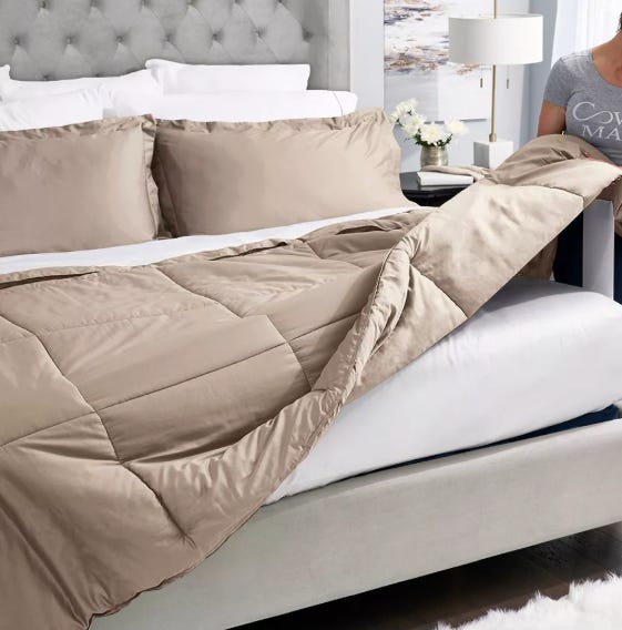 This ordinary-looking comforter is actually elasticized along the bottom for a 10-second bedmaking experience. (Photo: Target)
