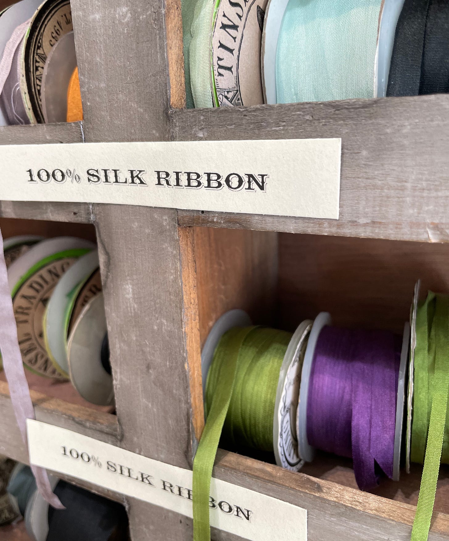 These silk ribbons at Tinsel Trading in Berkeley, Calif. are divine and make even a fistful of wild Queen Anne’s Lace wildflowers look like a million dollars.