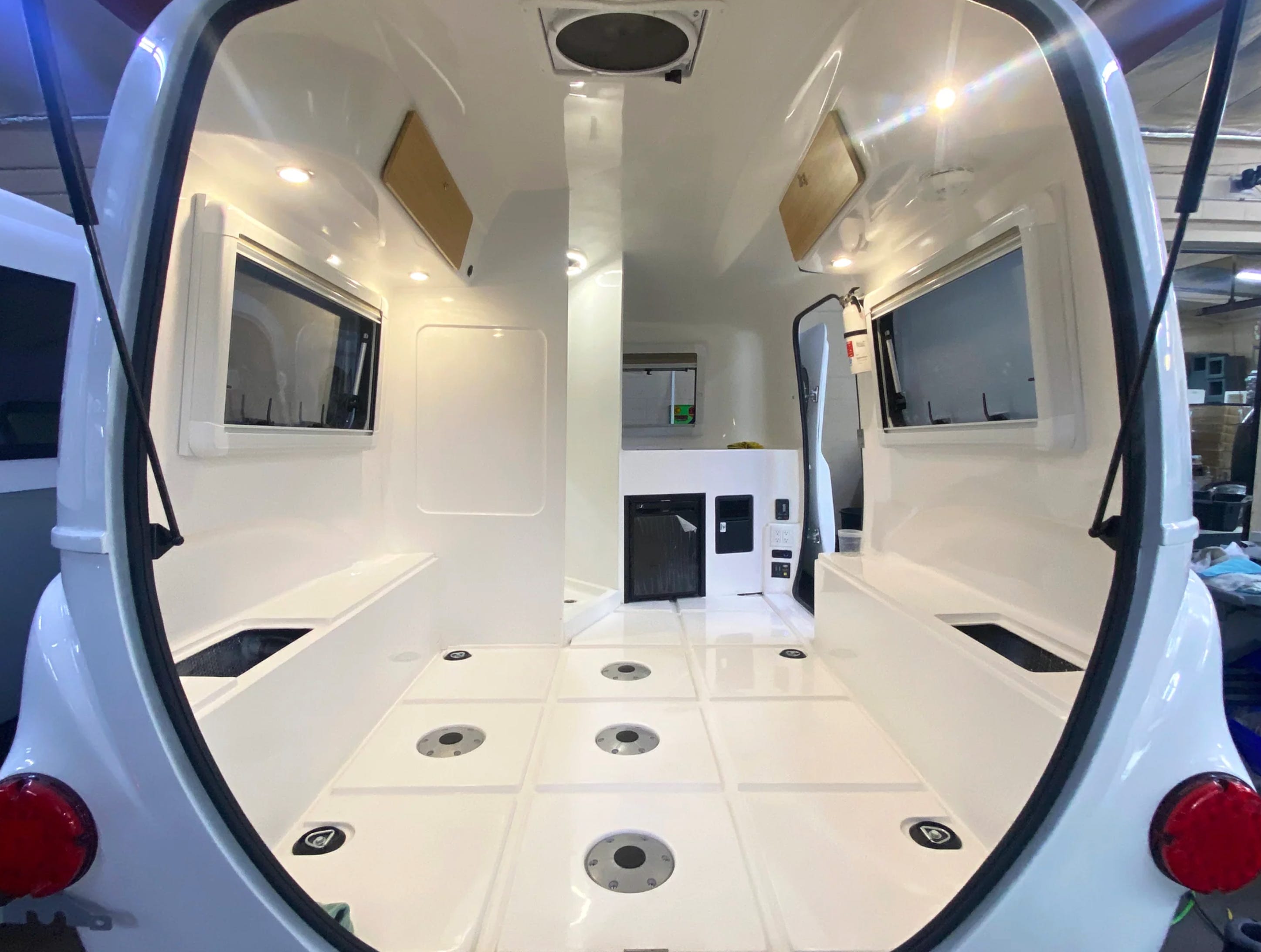 The interior’s components are easily removable, washable, and reconfigured. The campers are made with double fiberglass shells without seams, so no issues with leaks. (Photo: Happier Camper)