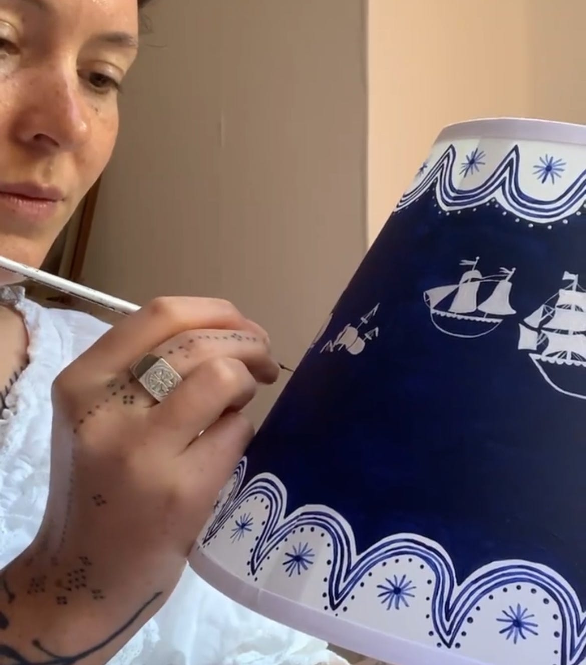 Olivia Hayward paints little scenes and embellishments on her lampshades, both custom and off-the-shelf. (Shop: Olivia Hayward)