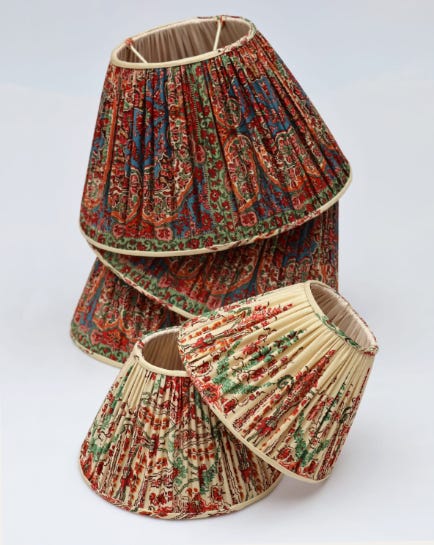 Lampmaking is an art form, pure and simple. Artist Olivia Hayward creates painted and handsewn lampshades one by one from her studio in the UK. Pair them with the base of your choice.