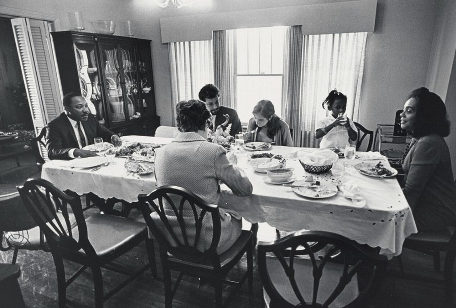 Martin Luther King Jr. with family and friends after Sunday services, 1967-68. Photo: Benjamin J. Fernandez
