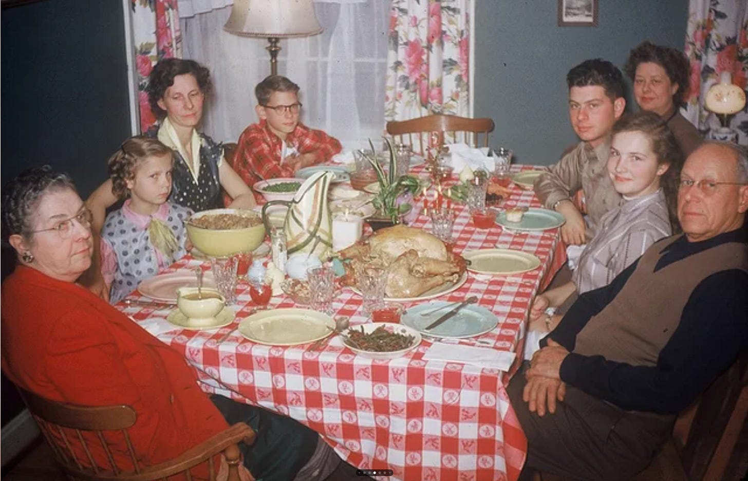 Random family (some happy, some not so much) at Thanksgiving, 1960s. Photo: unknown