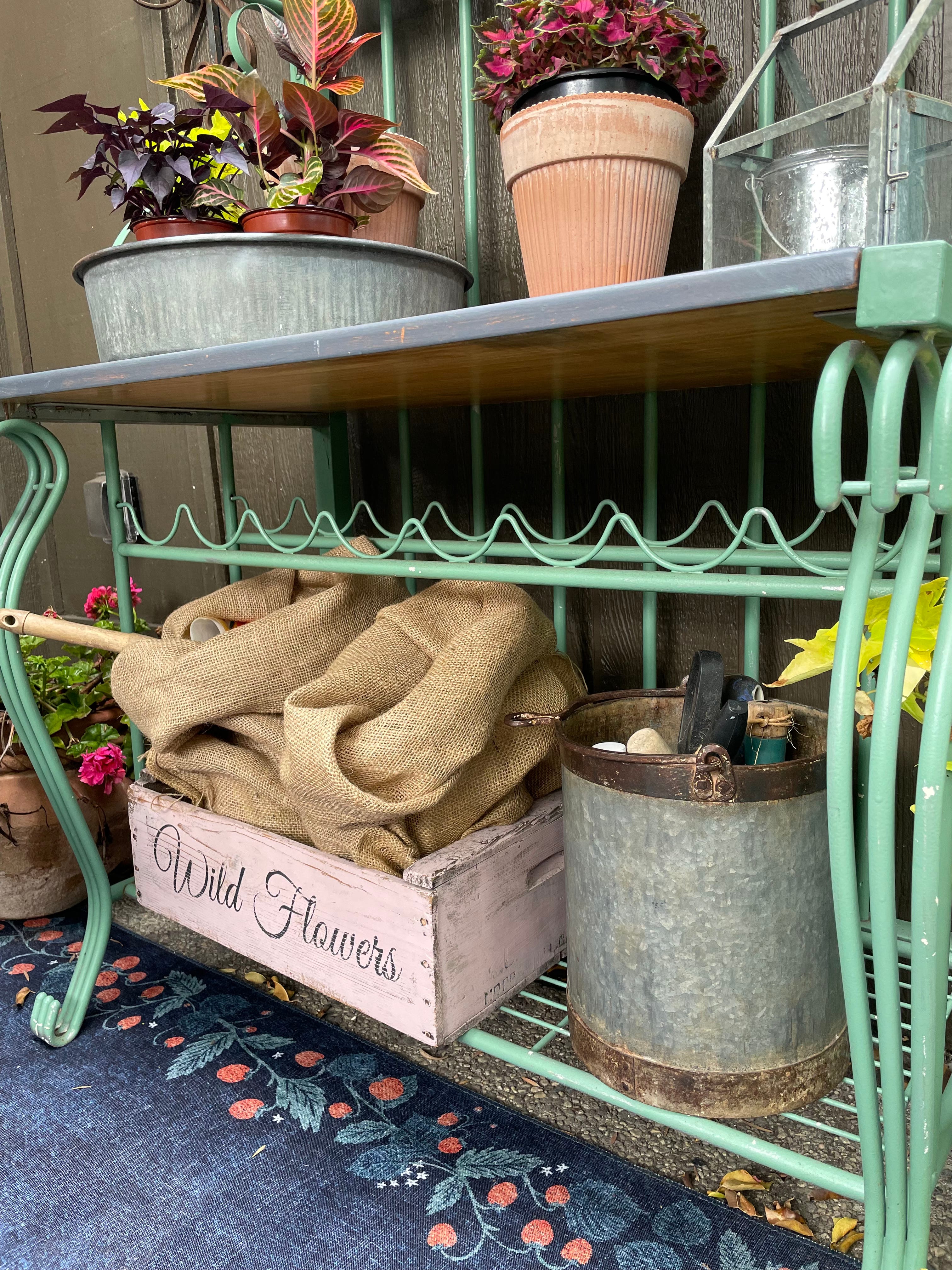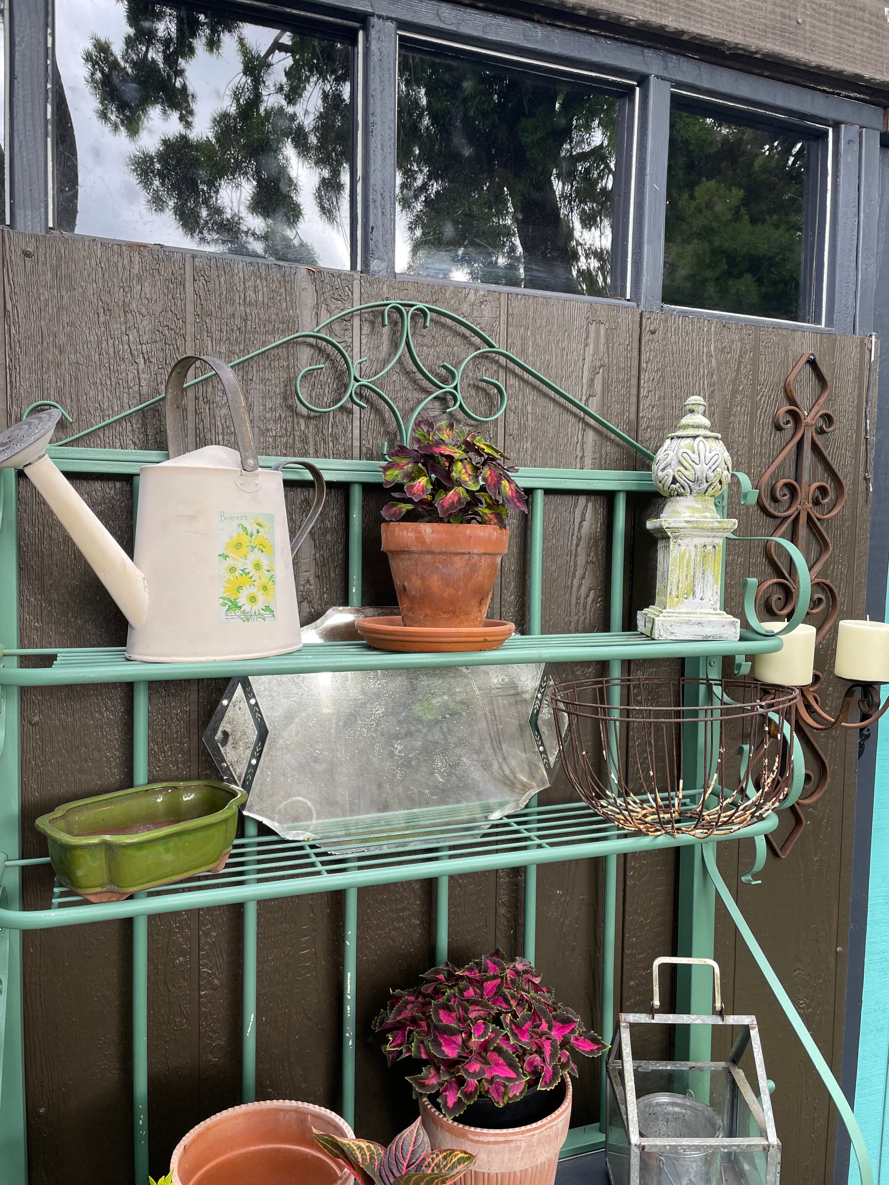 One of the pieces I inherited from our former business She Shed Living, this baker’s rack transitions easily into a backyard potting table. The best $50 ever spent.