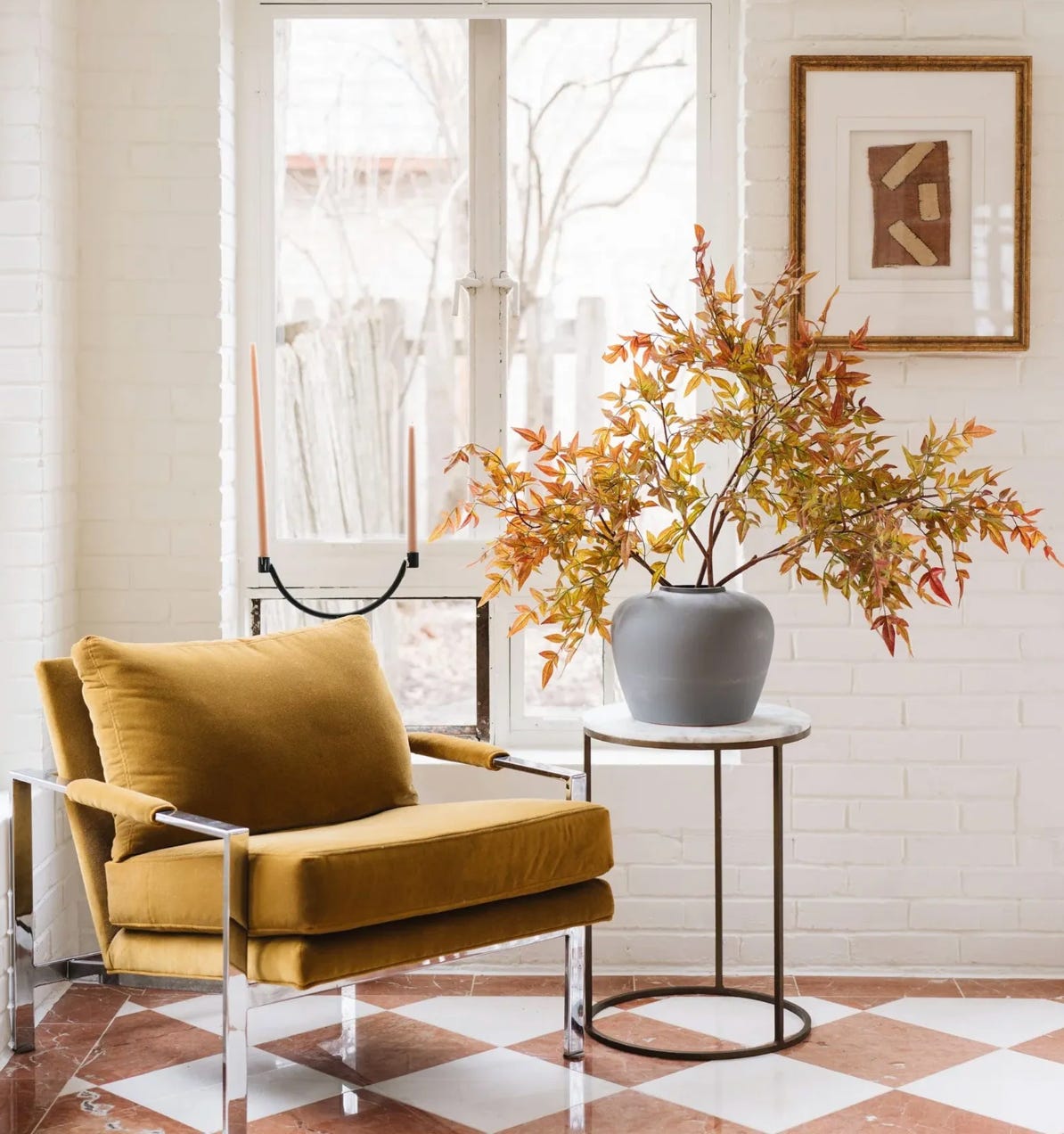 If you’re going to accomplish just one thing, then do it around floral arrangements. Artificial florals are so advanced now that the good ones are hard to distinguish from real. Dried stems are absolutely stunning for fall (actually anytime of year) and you have a lot of shades and textures to choose from.