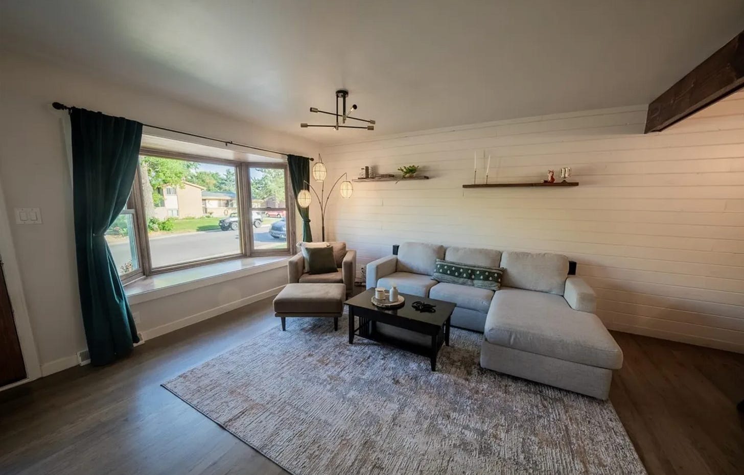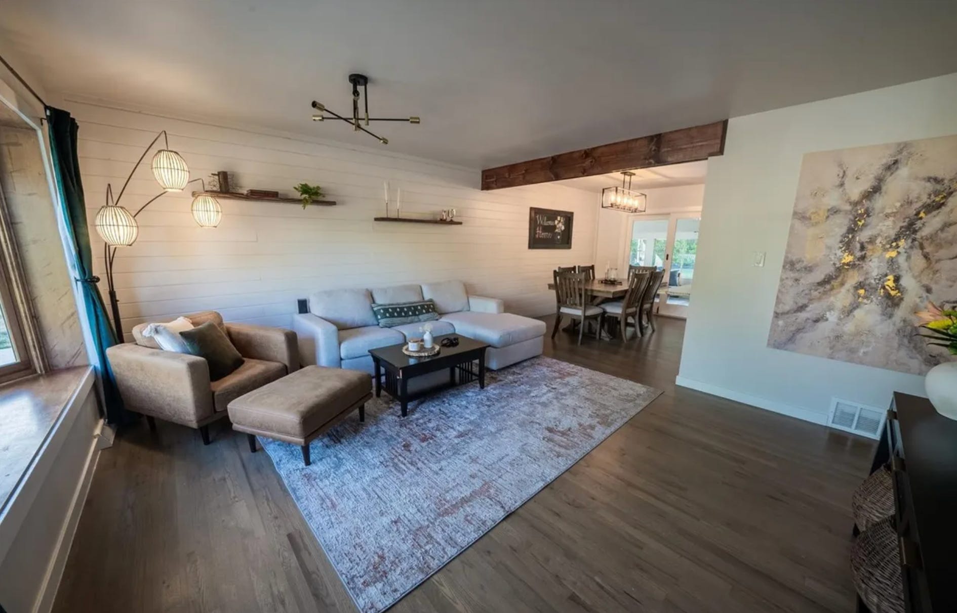 Some other suggestions for the original room would be a different area rug and ceiling fixture. Also, let’s add more color and texture with pillows, artwork, decorative pottery and sculpture, and interesting side tables.