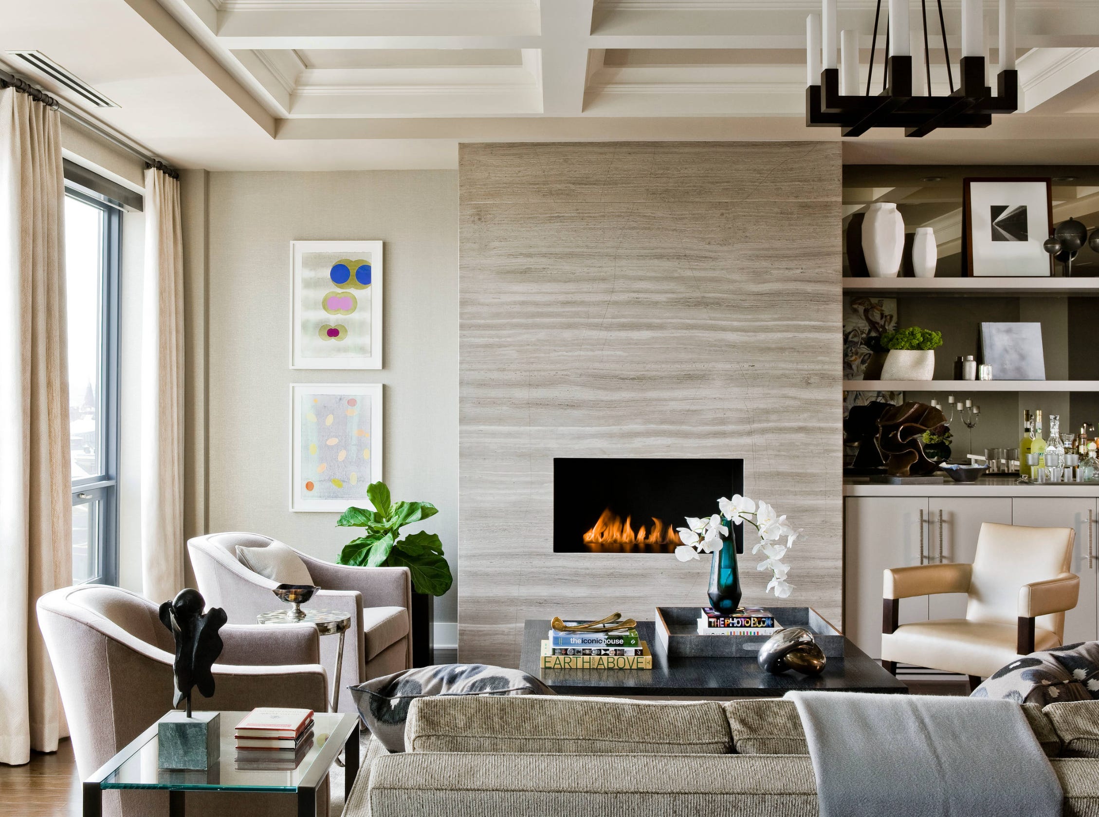 Electric fireplace inserts provide visual interest and the warm feel of a traditional wood-burning hearth. Combining a fireplace with built-ins on one side would create cohesion in the living room. (Photo: Houzz)