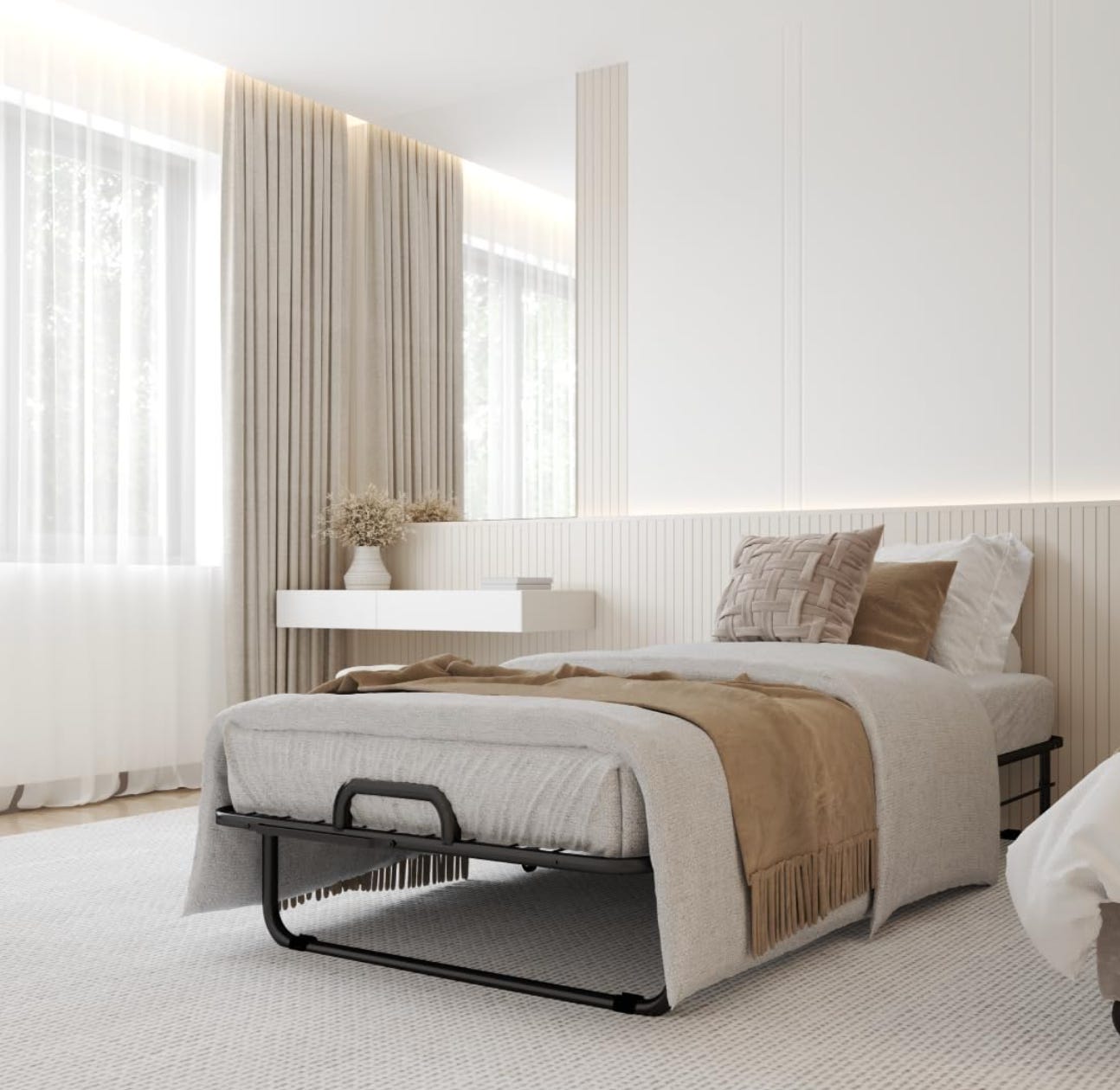 For about $350 you really can’t go wrong with the classic rollaway bed. These metal foldups still resemble the ones we all remember from family trips that ended in budget motel rooms. However, they are superior in strength and support.