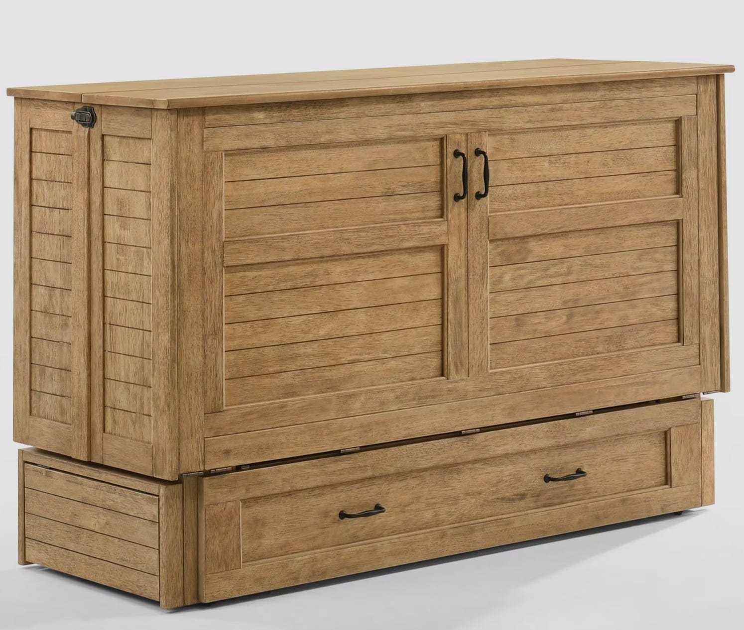 The cabinet bed is a very interesting configuration. It’s a Murphy bed that folds away into a portable cabinet instead of into the wall.