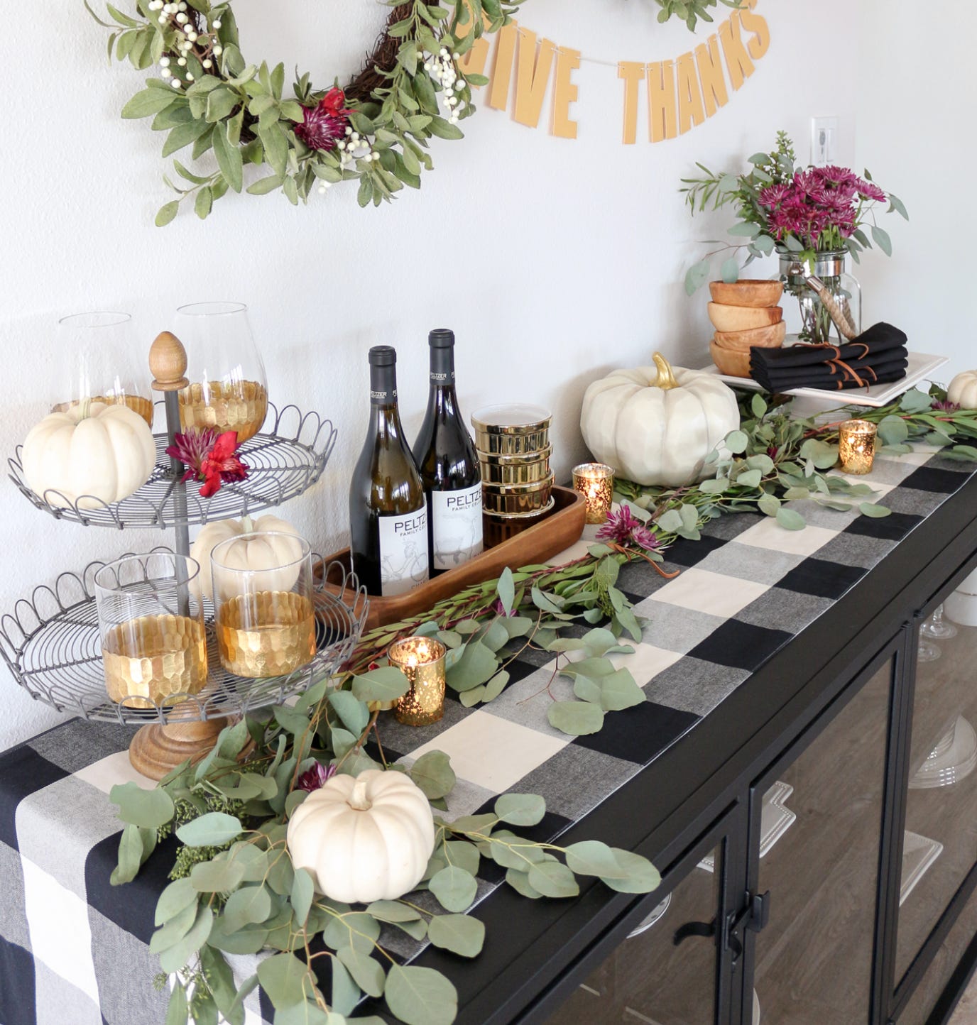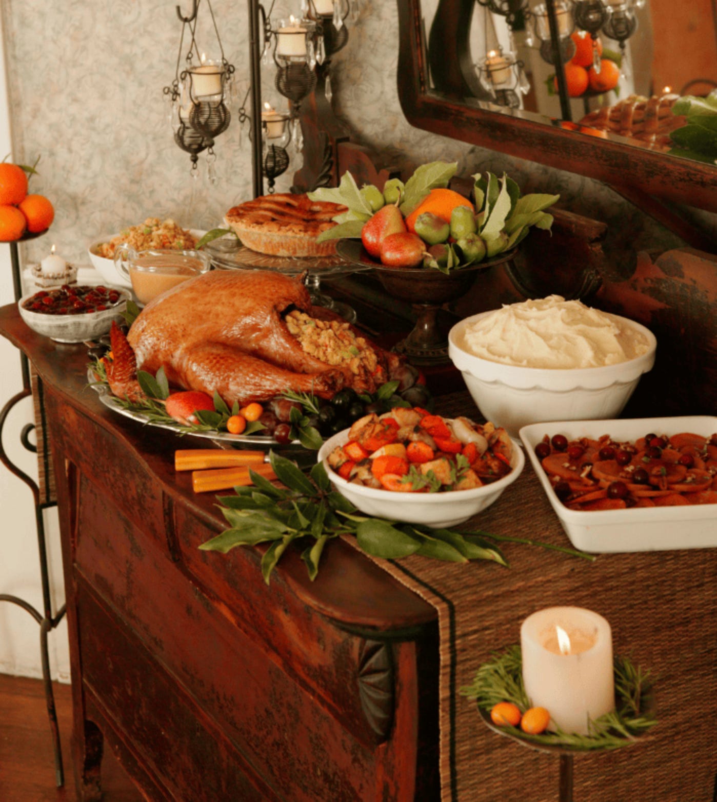 The absolute best strategy for serving Thanksgiving dinner is using a sideboard. That’s what they are made for. You can have it up close to your dining tables so the kitchen remains free of crowds. (Photo: Shabby Fufu)