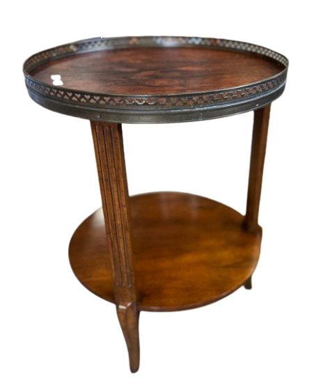 I love having an abundance of small tables around (and don’t have enough at the moment). This pretty one, with its worked metal edge and lower shelf, is a great addition next to a reading chair or for lamp placement.